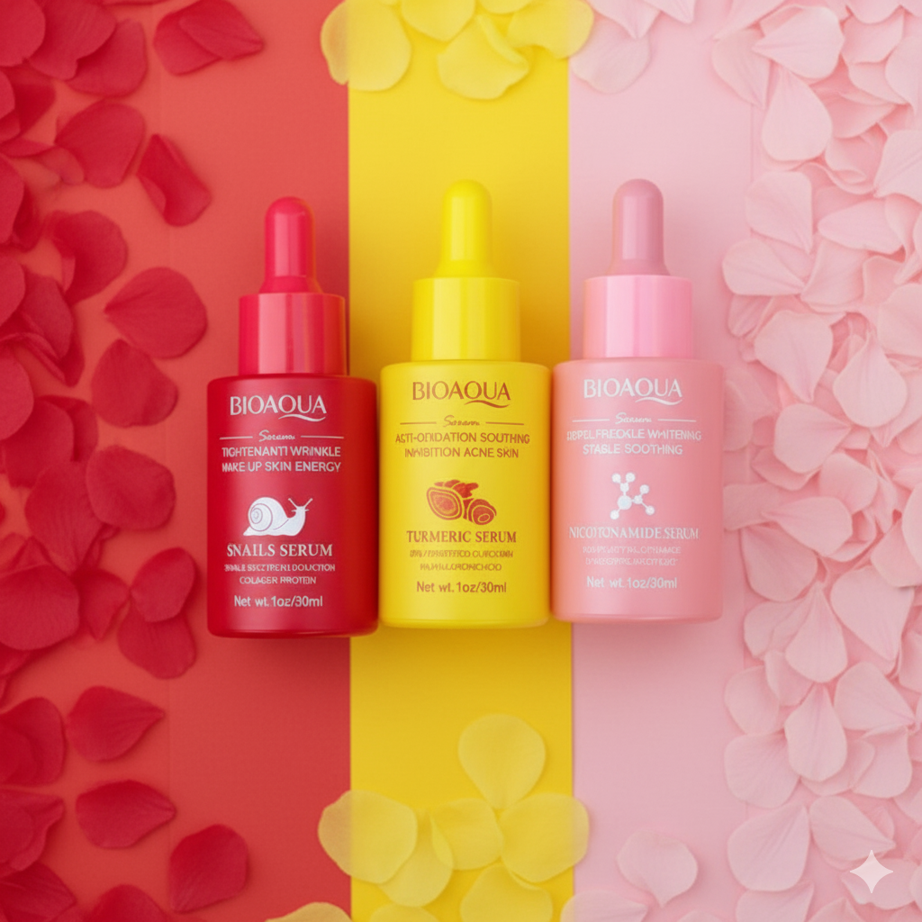 Un rituel complet pour une peau éclatante, lisse et purifiée. Découvrez notre pack de 3 sérums complémentaires : Vitamine B3, Curcuma et Filtrat de sécrétion d’escargot – des actifs puissants réunis pour sublimer, protéger et régénérer votre peau.